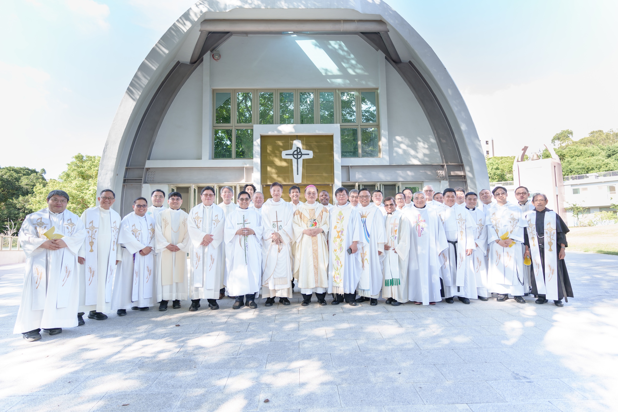 [Group photo of clergy concelebrating Mass at the Our Lady of Providence Chapel during the ASEACCU Annual Conference 2025, hosted by Providence University]