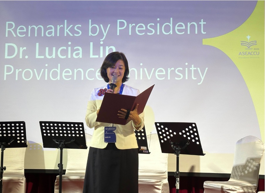 [Professor Lucia Shih-Ling Lin, President of Providence University, delivering her remarks during the Welcome Reception at the ASEACCU Annual Conference 2025.]